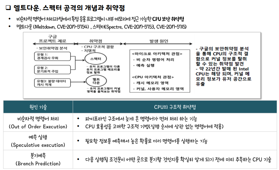 멜트다운, 스펙터 공격 : CPU 구조적 결함을 이용하여 공격하는 기법