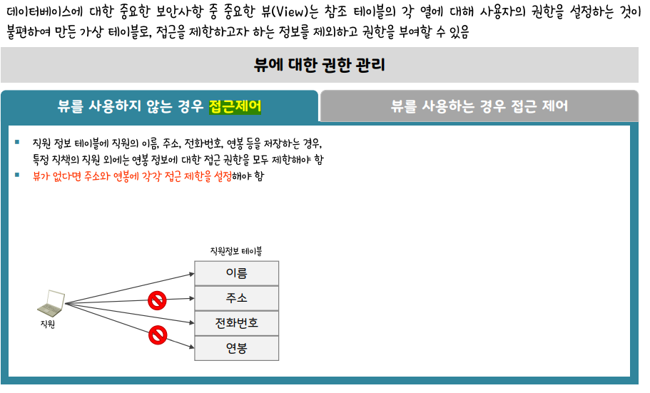 뷰를 통해 권한을 관리할 수 있다.