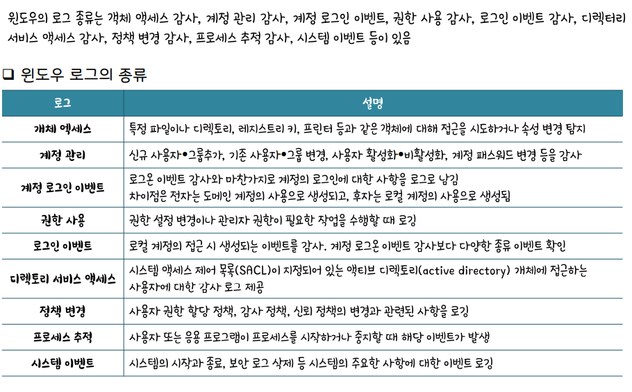윈도우 로그 종류