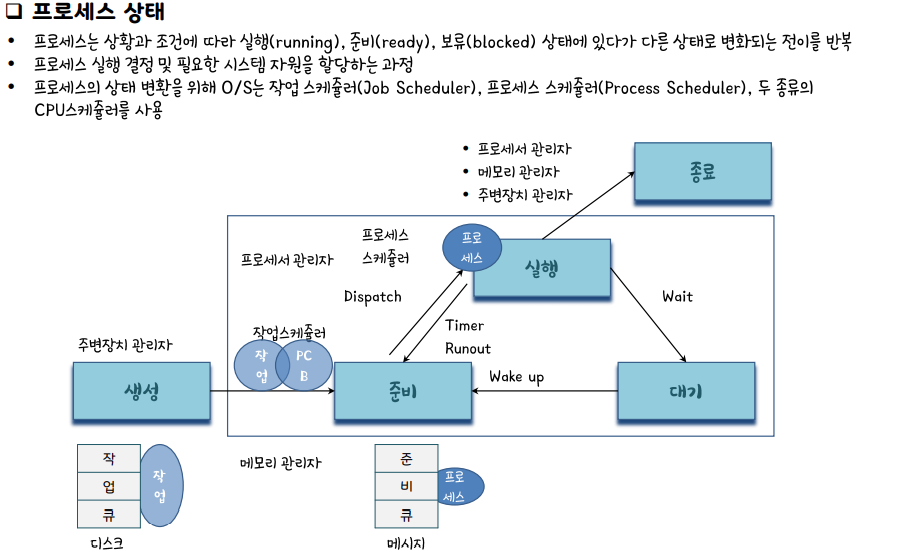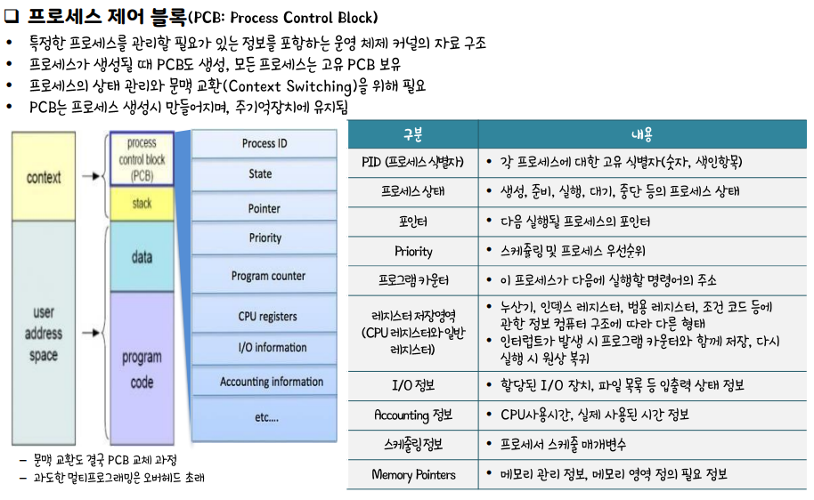 프로세스 제어 블록(PCB)를 통해 상태제어를 한다.