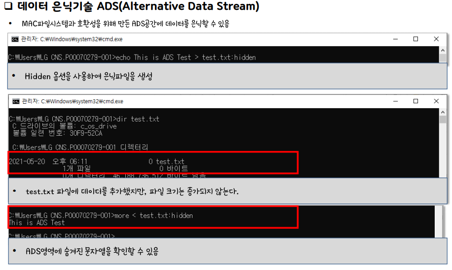 데이터 은닉기술 ADS(Alternative Data Stream)