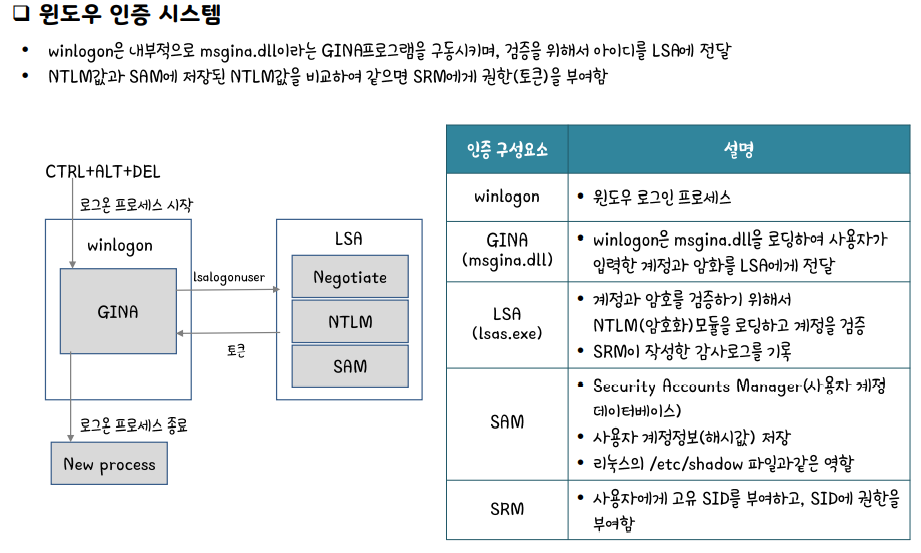 SAM : 사용자 계정 정보 데이터 베이스, 사용자 계정보보(해시값)저장