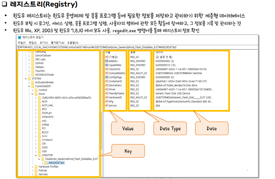 하이브(Hive)파일 레지스트리 정보를 가지고 있는 물리적인 파일