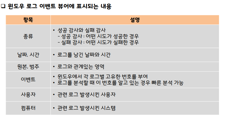 윈도우 이벤트 로그 종류