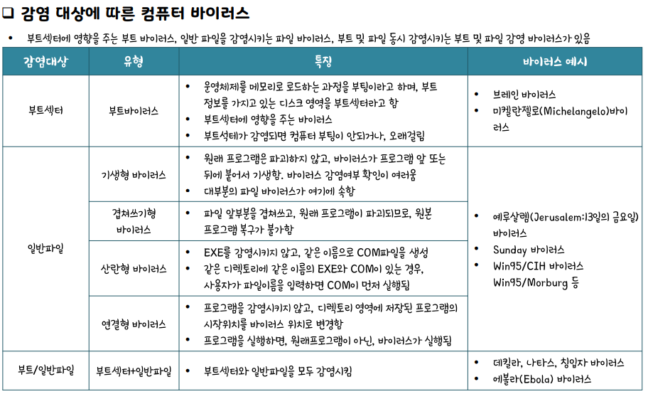 감염 대상에 따른 바이러스 종류