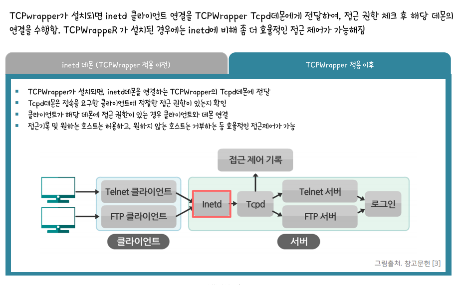 TCPwrapper는 아주 낮은 레벨의 방화벽 역활을 한다.