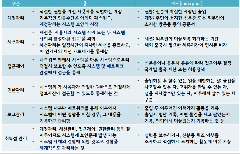 기능은 사용자 인증 및 계정관리, 해킹방지, 접근제어 등이 있다.