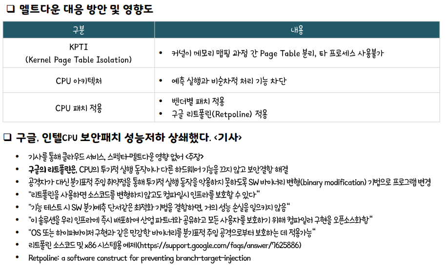 대응 방안 (구글이 리트폴린이라는 프로젝트를 통해 인텔CPU 보안패치를 했다.)