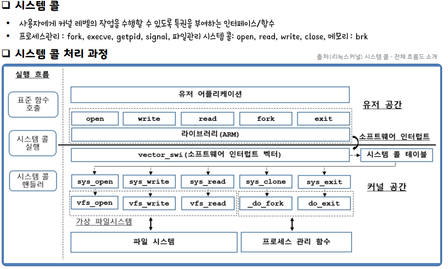 시스템 콜 : 사용자에게 커널 레벨의 작업을 수행할 수 있도록 특권을 부여하는 인터페이스/함수