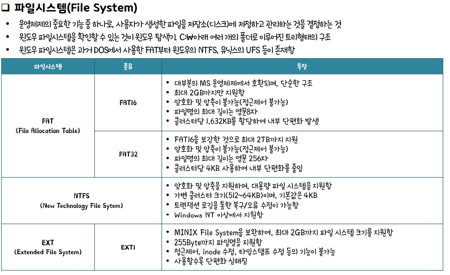 운영체제의 중요한 기능 중 하나로, 사용자가 생성한 파일을 저장소에 저장하고 관리하는 것을 결정