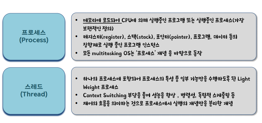 스레드는 프로세스에 포함되어 프로세스의 특성 중 일부기능만 수행하도록 된 프로세스이다.