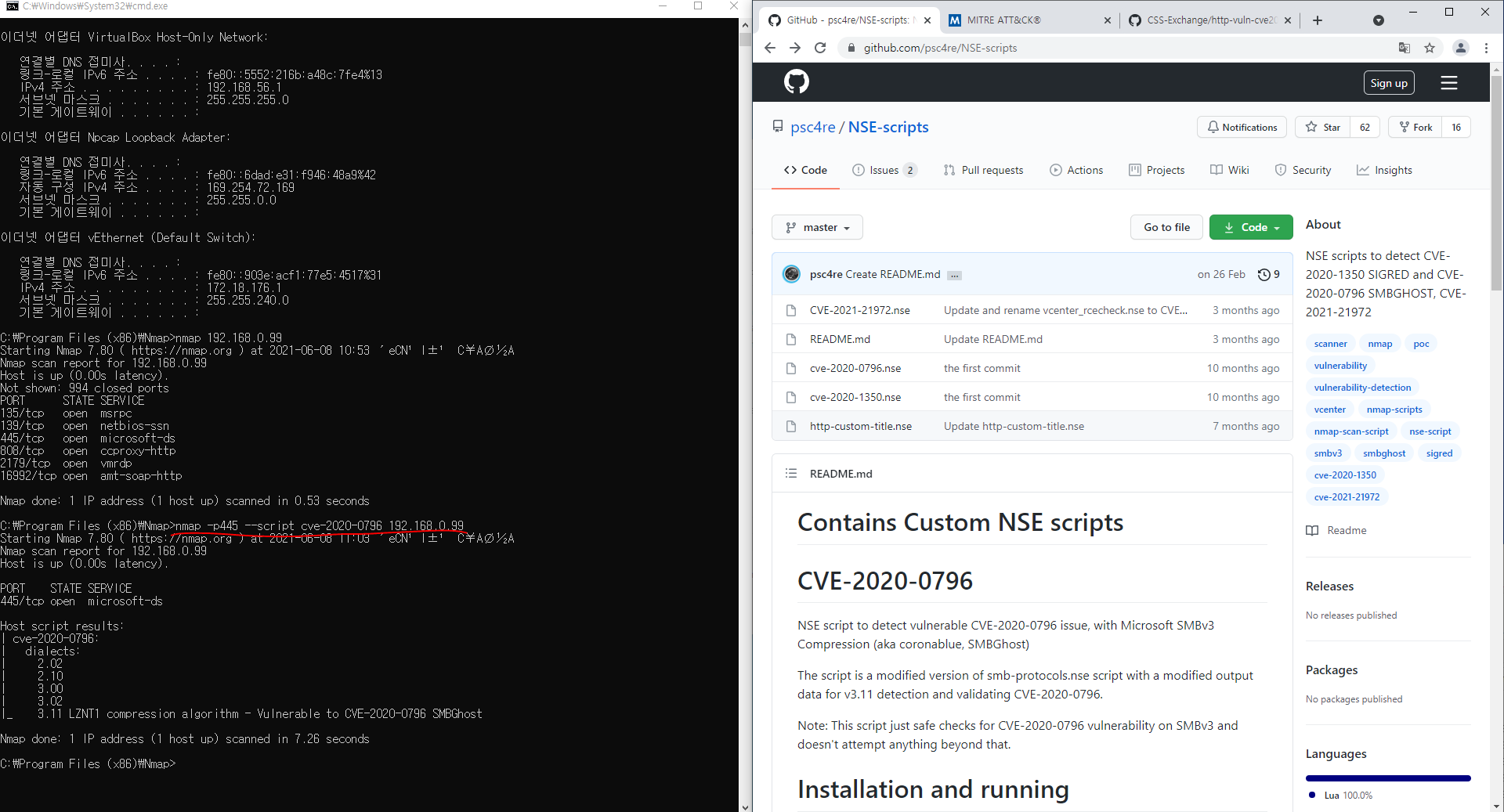 (https://github.com/psc4re/NSE-scripts) 코드를 다운로드하여 nmpa script파일에 넣어서 취약점 점검을 해보자.)