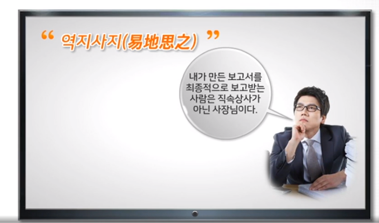 → 상사의 가치관을 가지고 생각해라. EX) 상사는 상생 나의 보고는 경쟁