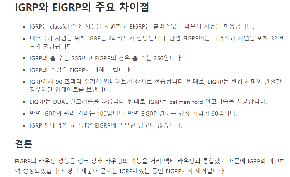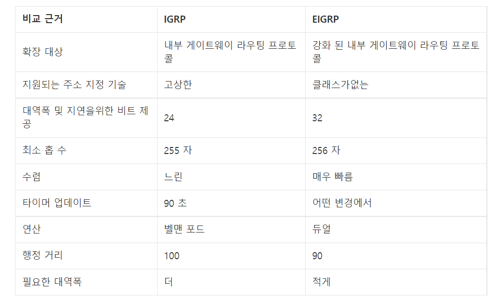- 내부 게이트웨이 라우팅 프로토콜 (Cisco가 개발한 거리벡터 내부 게이트웨이 프로토콜)