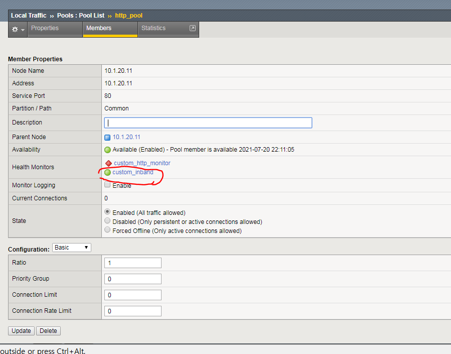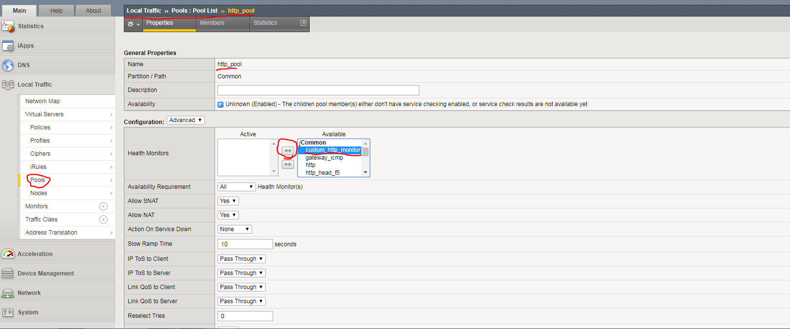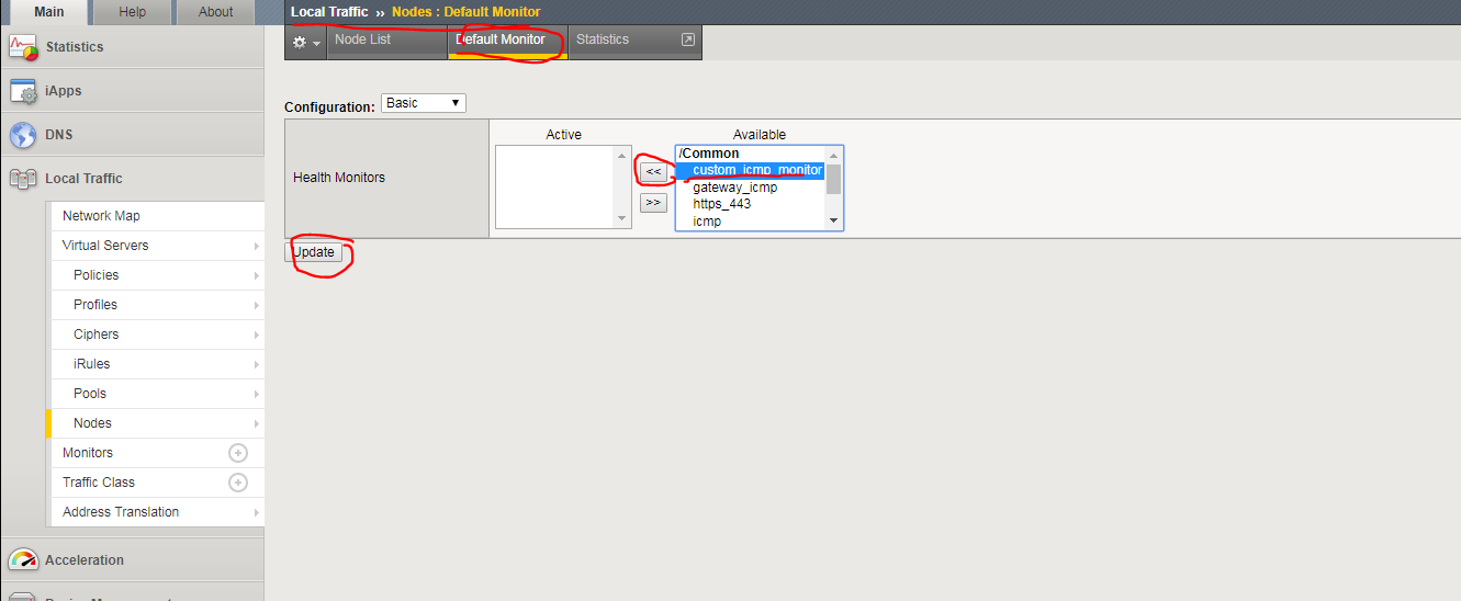 4) Health Monitors에서 custom_http_monitor 선택 후 '<<' 클릭 후 Update를 합니다.