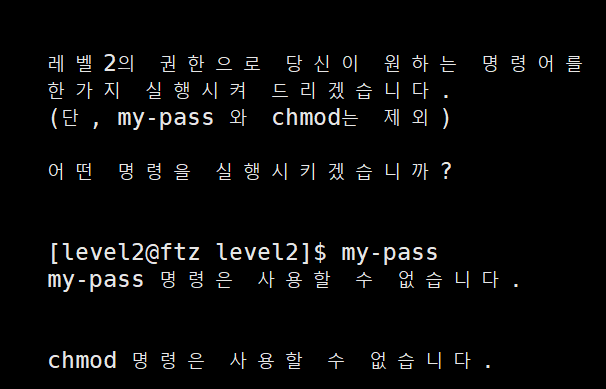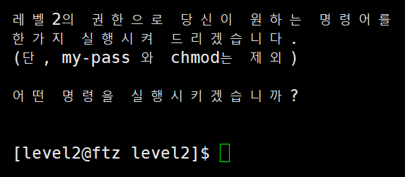level2의 권한으로 my-pass 명령어를 입력하면 비밀번호가 출력된다.