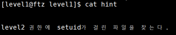 level2 권한에 setuid가 걸린 파일을 찾으라고 한다. setuid는 set은 '변경하다' 이며, uid는 userid의 줄임말이다.