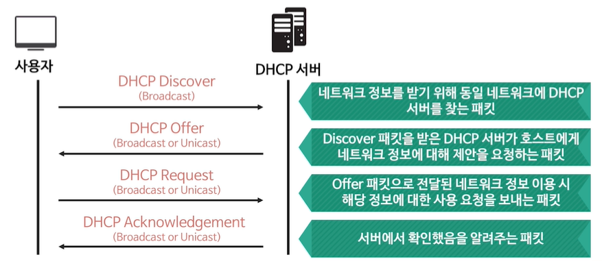 1. 사용자가 DHCP Discover(Broadcast)를 DHCP 서버로 전송