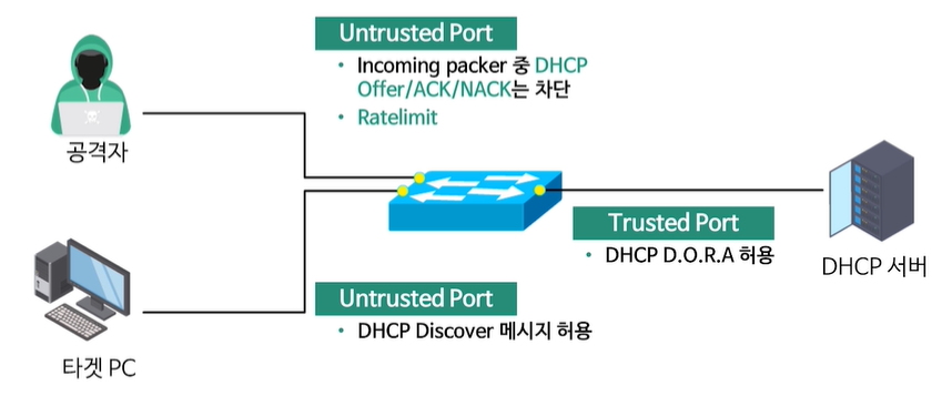 DHCP Snooping 스위치 포트에는 Trust Port와 Untrust Port가 있습니다.