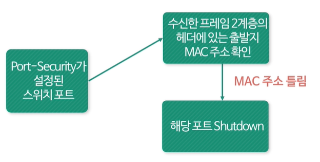 - 스위치 포트에 보안 설정