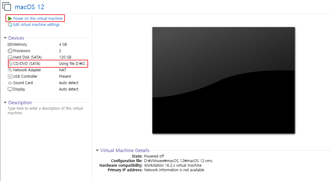 저는 D:\VMware\macOS 12 해당 경로에 설치했습니다.(본인이 설치한 경로로 이동해주세요)