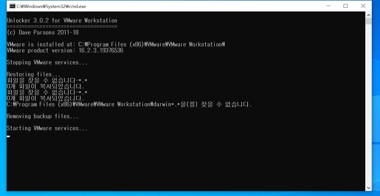 win-install.cmd 파일이 제대로 설치가 됐으면, 다시 VMware를 실행합니다.