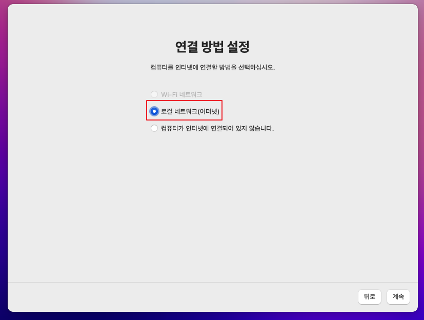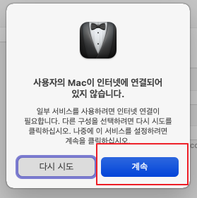 현재는 네트워크(인터넷)이 연결이 안 된 상태입니다.