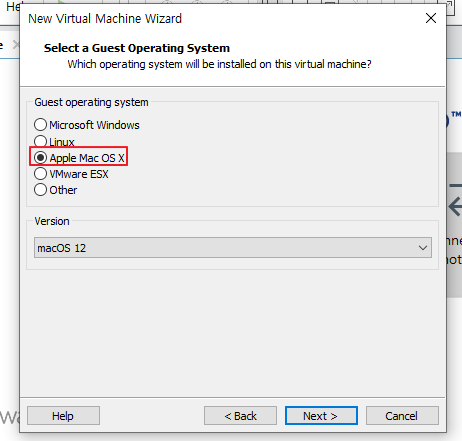 OS 선택란에서 macOS가 보이지 않습니다. cancel로 실행을 꺼주고 Vmware를 종료합니다.