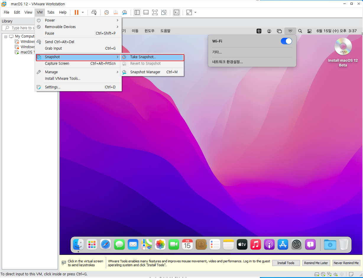 VMware 15버전 이상 프로그램, Unlocker-master파일, macOS12.iso파일