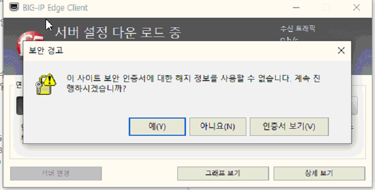 - 방화벽에서 특정 서버 IP 오픈(CRL 인증성 서버 IP 오픈)