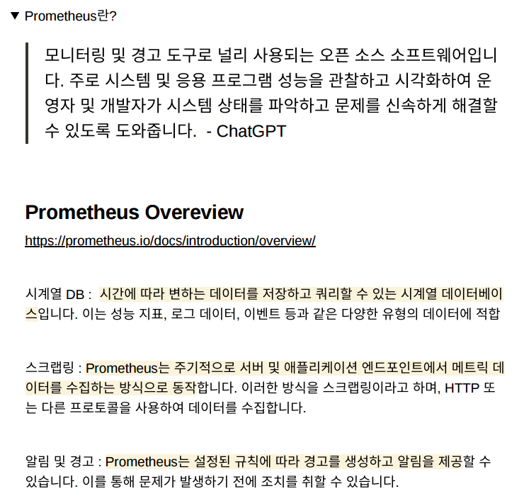 Prometheus와 Grafana가 어떤 역할을 하며, 해당 툴을 통해서 서버의 상태 정보를 어떻게 체크할 수 있는지 확인해보겠습니다. 아래 PDF파일에는 설치, 연동, 커스텀 하는 방법을 올려두었습니다. 필요하시면 다운 받아서 설정하시면 됩니다.