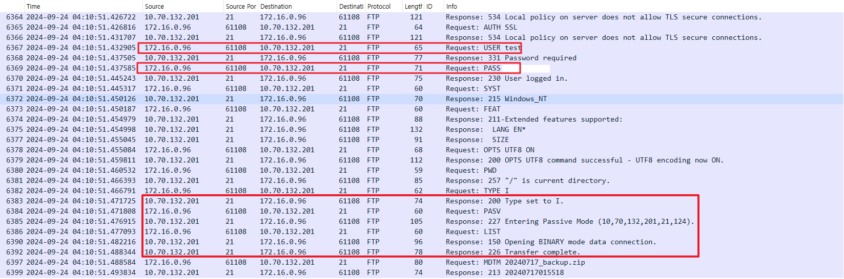 목적지 IP : 10.70.132.11 목적지 포트 : 21번