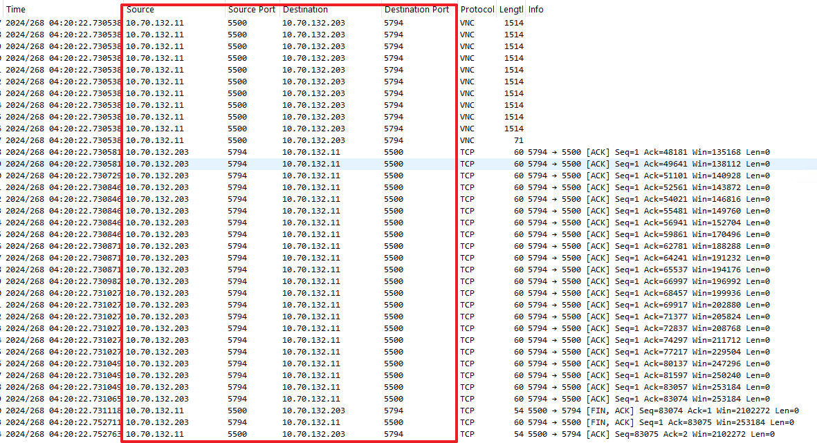 목적지 IP : 10.70.132.11 목적지 포트 : 5500번