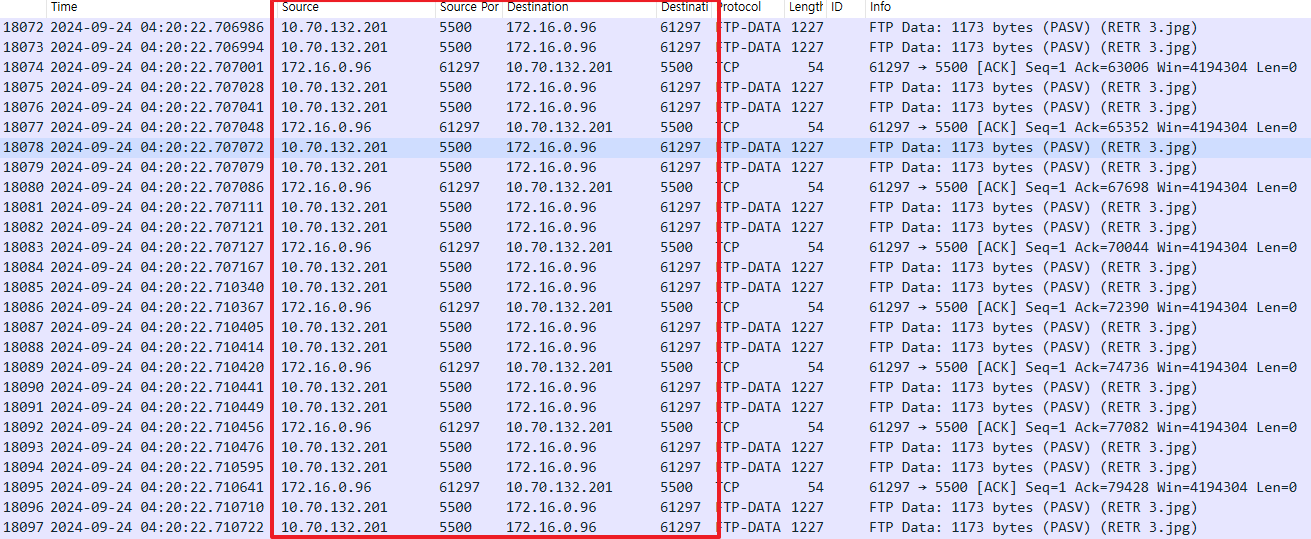 출발지 IP : 10.70.132.11 출발지 포트 :21