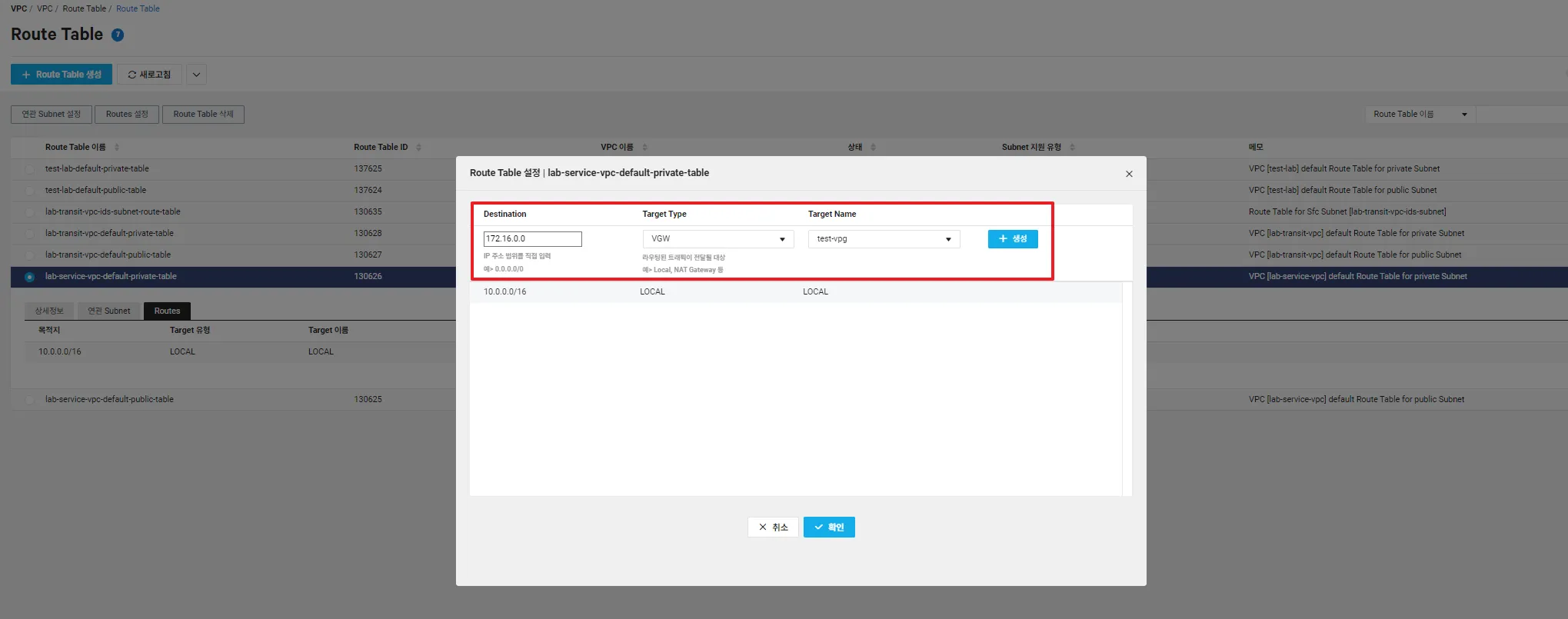 - NCP대역을 가상 프라이빗 게이트웨로 타겟을 잡습니다.