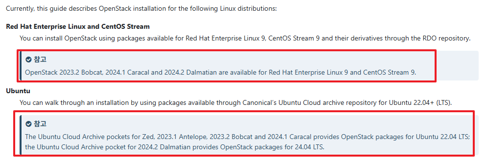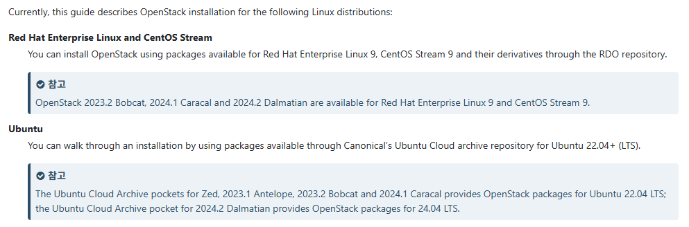 1. 오픈스택 설치 지원이 되는 OS