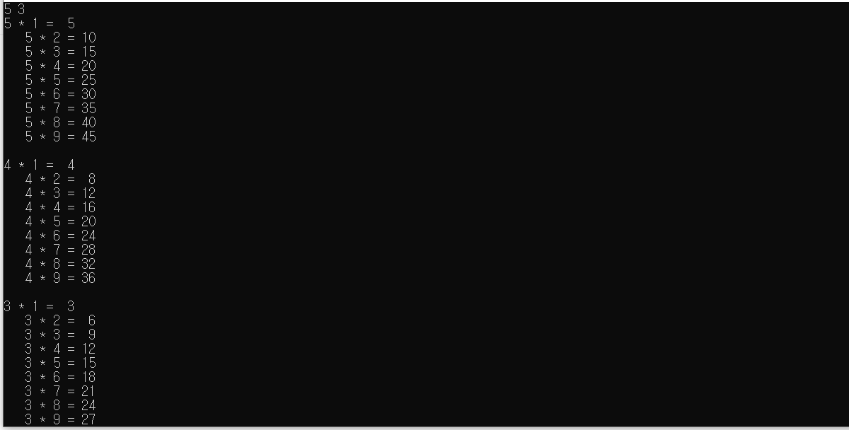 printf("%d * %d = %3d ",i,j,i*j);