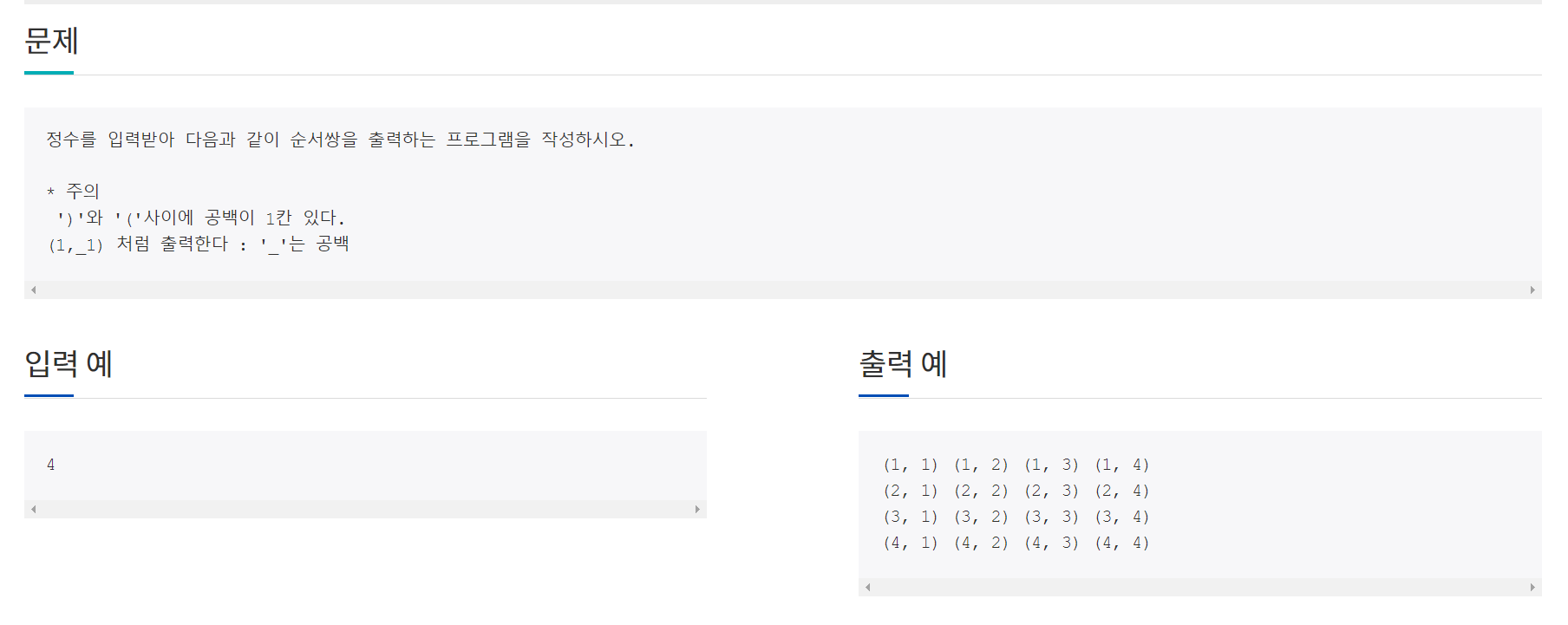 printf("(%d, %d) ",i,j,i*j);