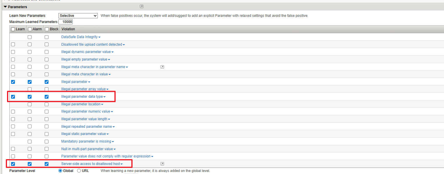 3. Blocking setting에서 Parameter, SSRF관련 Rule Enabled