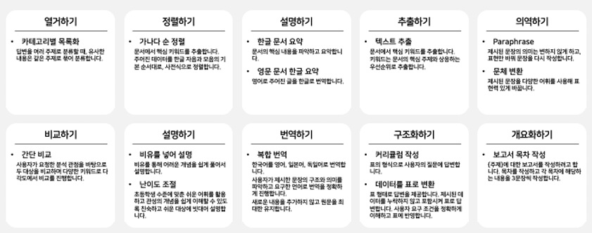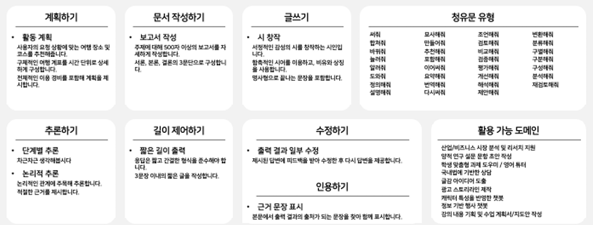CLOVA Studio 기능은 크게 4가지로 나눌 수 있음.