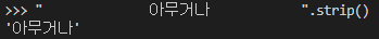 " 아무거나 ".strip() 와 깉이 입력하면 공백을 제거하고 값을 출력해준다.