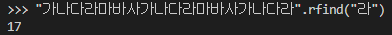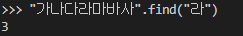 ex)"가나다라마바사".find("라")를 입력하면 "라"를 찾는 함수이다.
