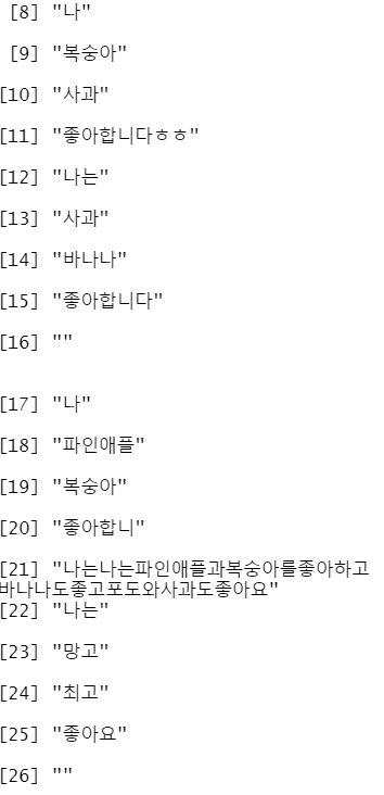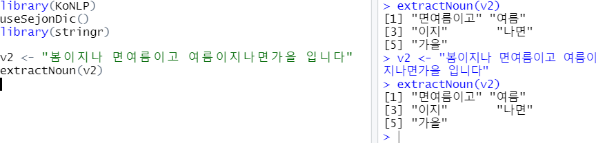 extractNoun() 명사 추출, 띄어쓰기를 기준으로 명사로 구분한다. 아래처럼 이상하게 출력된다.