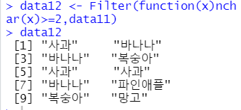 필터방법, 조건이 2개 들어갔다. 그래서 function으로 조건을 묶은 것이다 .nchar은 문자 갯수 출력하는 함수