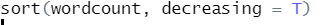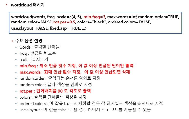 wordcloud를 만들때는 빈도수를 꼭 체크해줘야한다. 내림차순을 출력을 위해 decreasing을 쓴다.