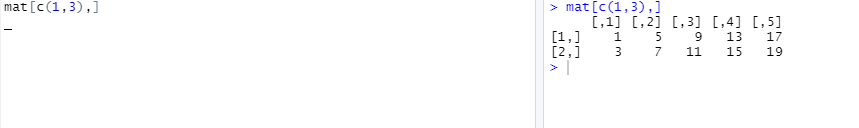 행은 다나오고 1,3열 출력 ' , ' 로 출력한다.