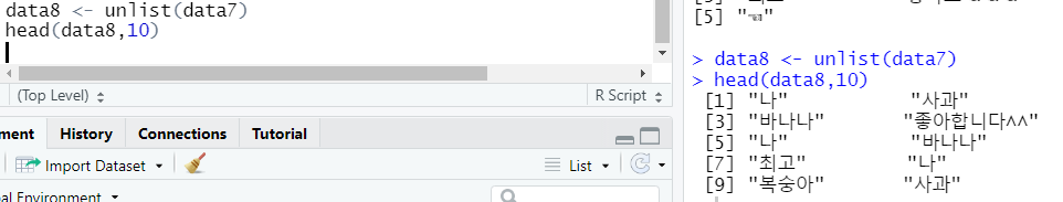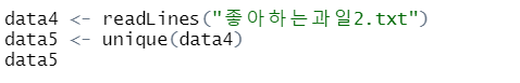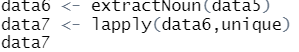 lapply(data6,unique)는 줄안에서 중복되는 단어 제거하는 함수이다.