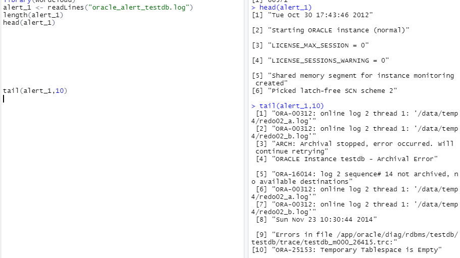실습은 다음 파일로한다. oracle_alert_testdb.log/