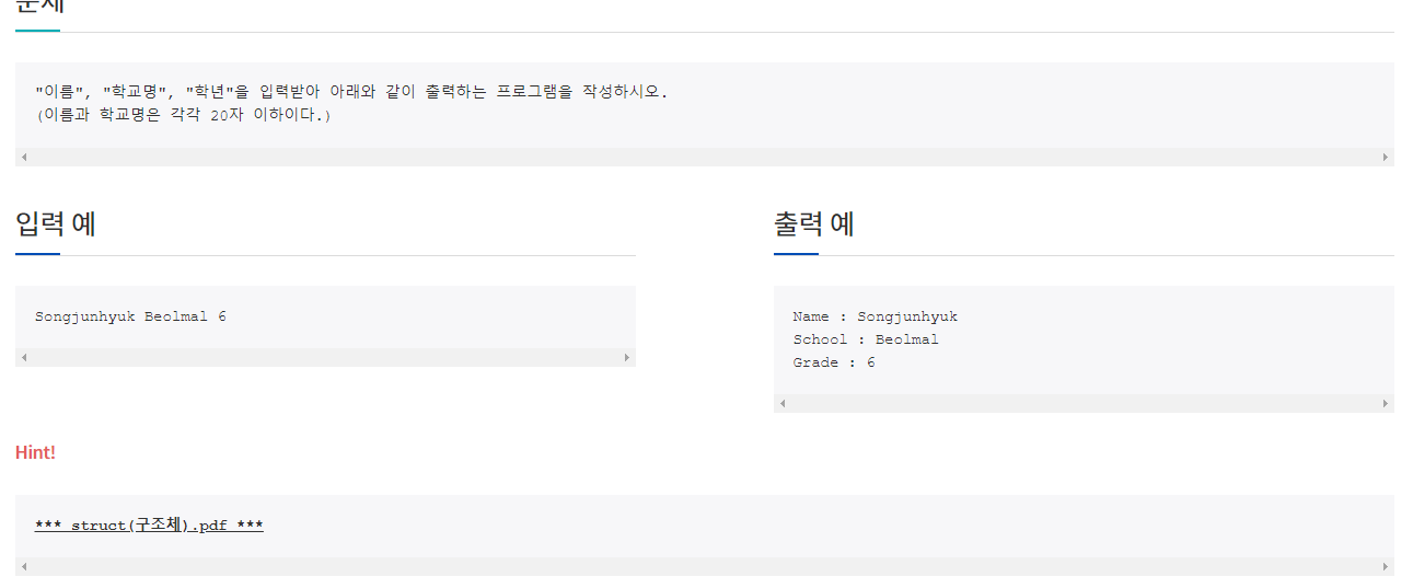 scanf("%s %s %d", c.name, c.school, &c.grade);
