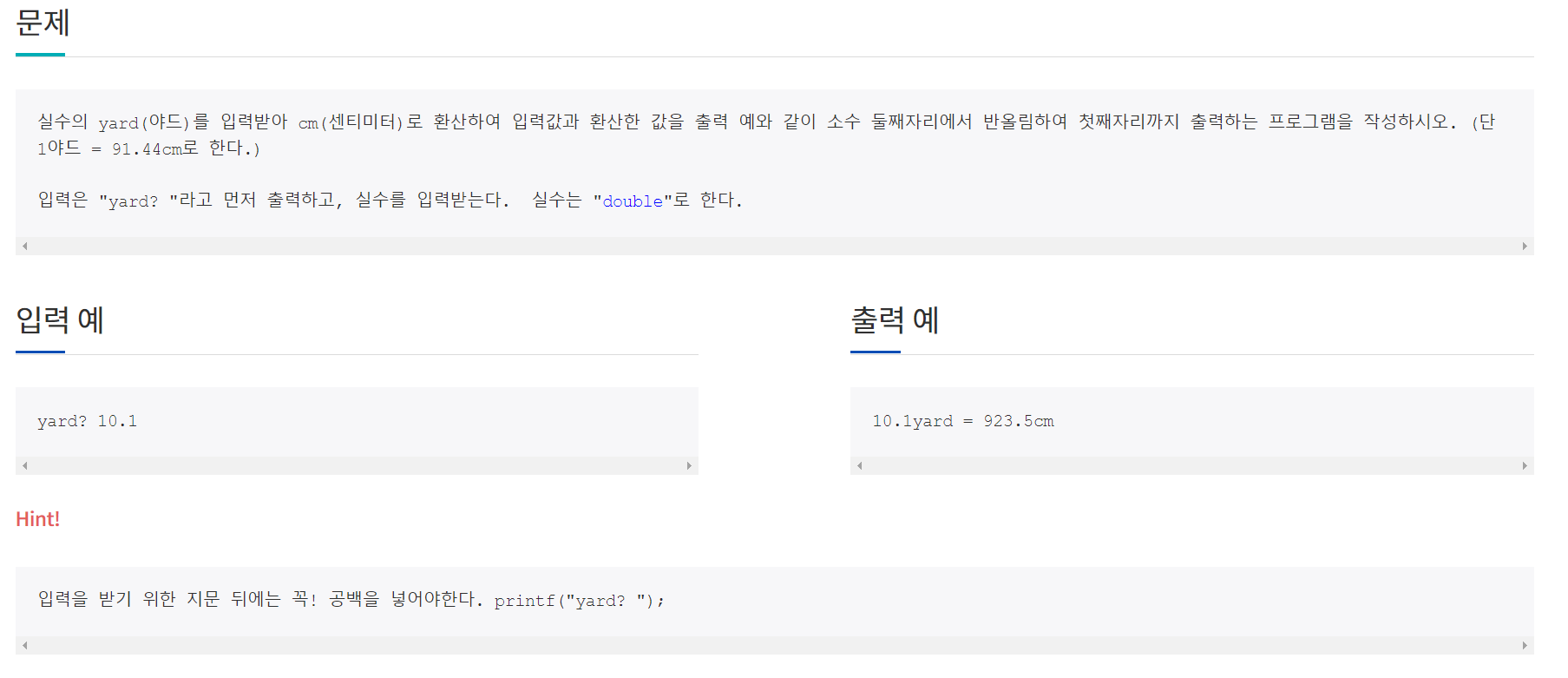 printf("%.1lfyard = %.1lfcm",a,a*yd);